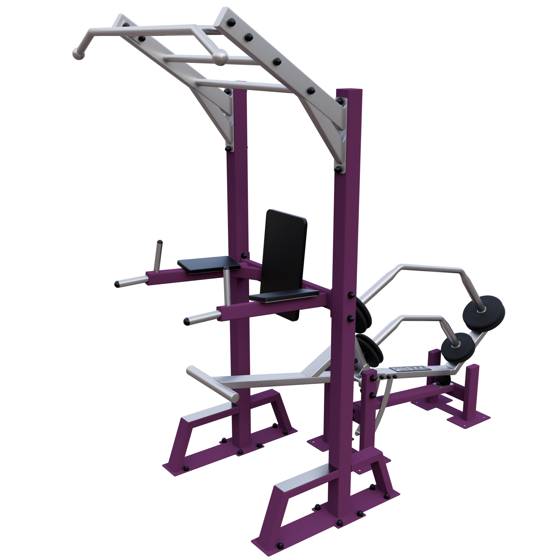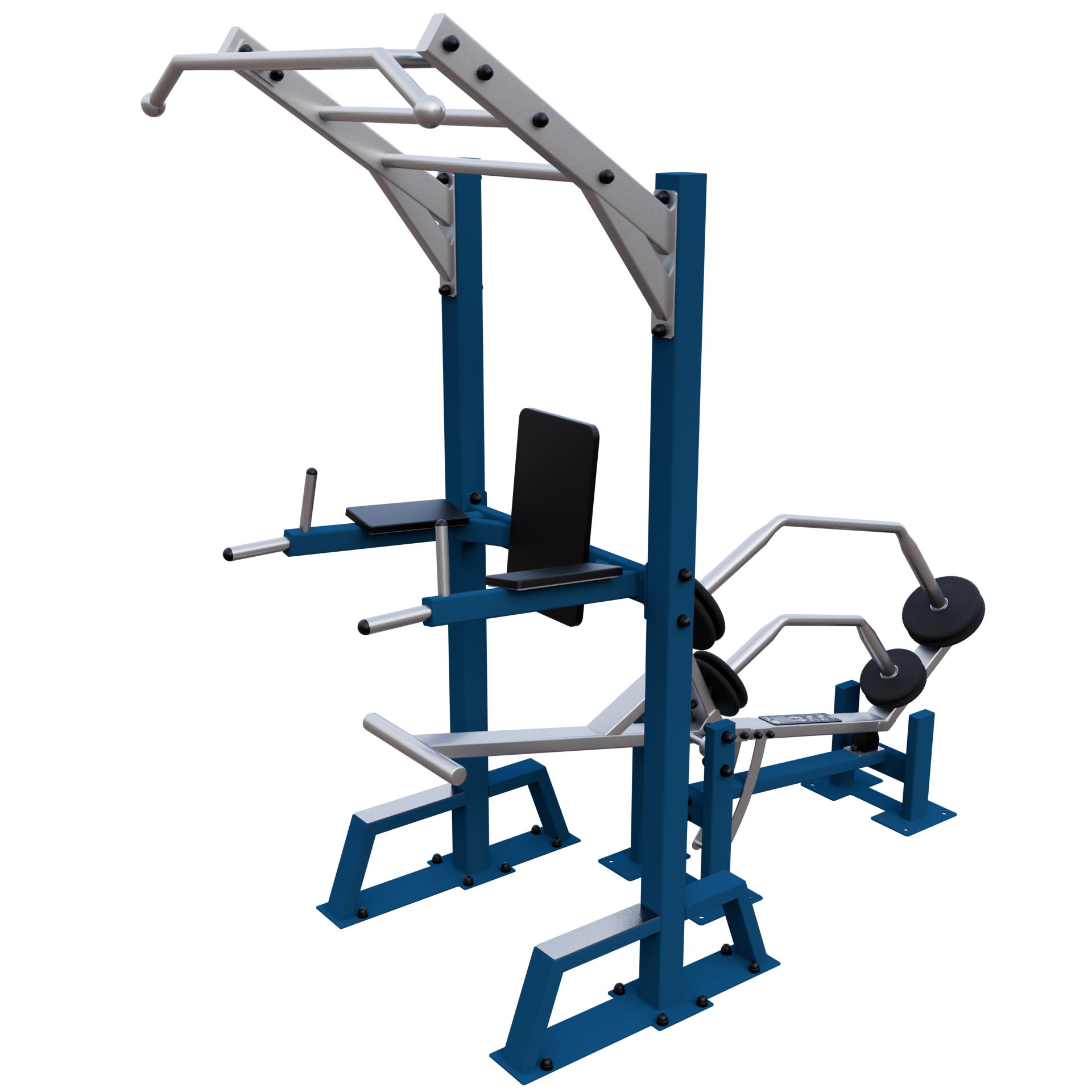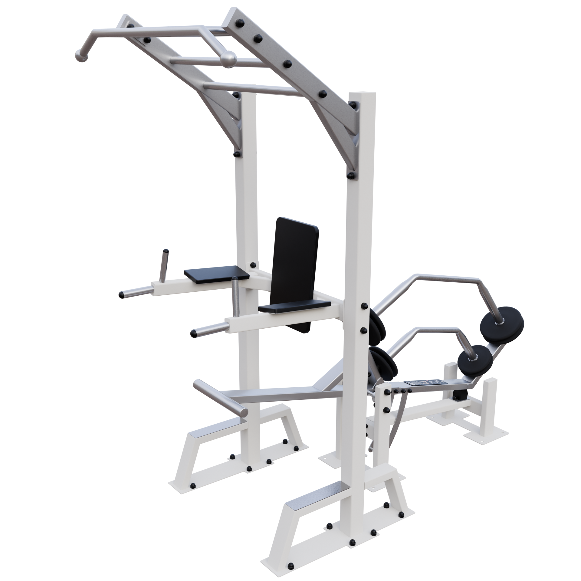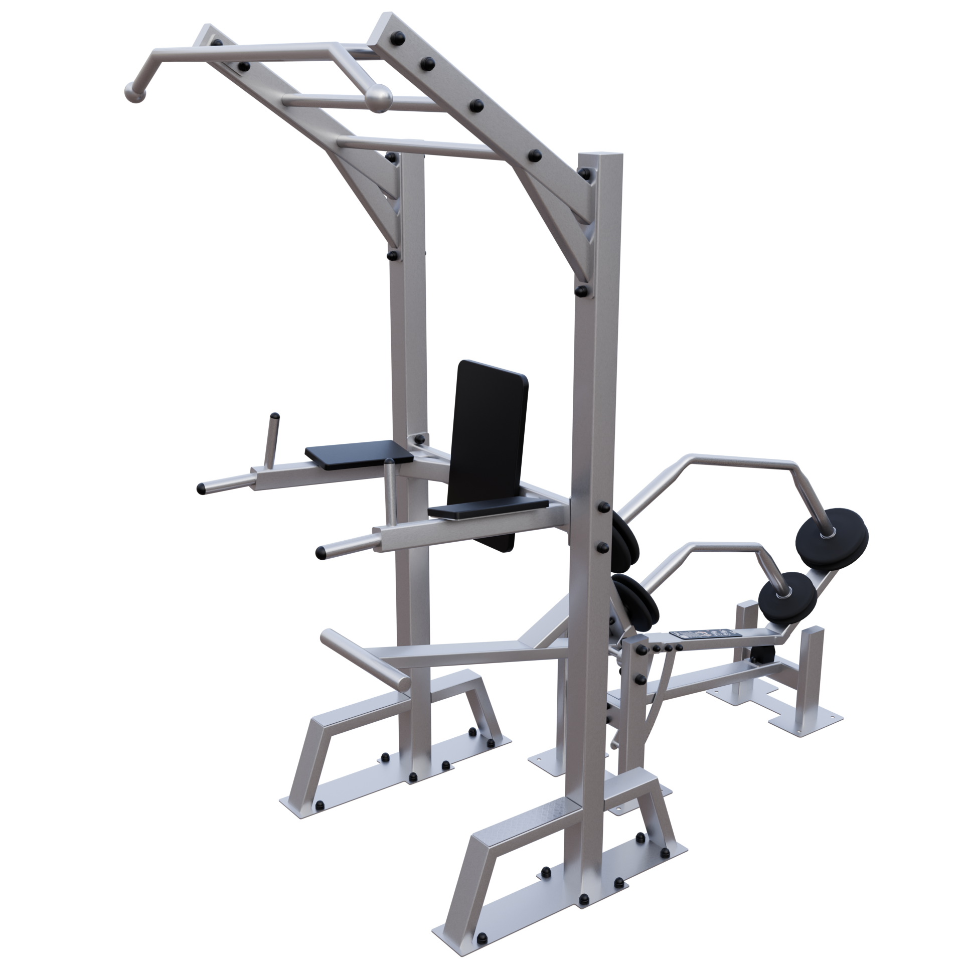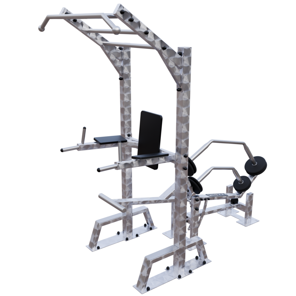 A IVE Assisted Pull Up & Dip device develops chest, back, shoulders, biceps, triceps, and forearms muscles.