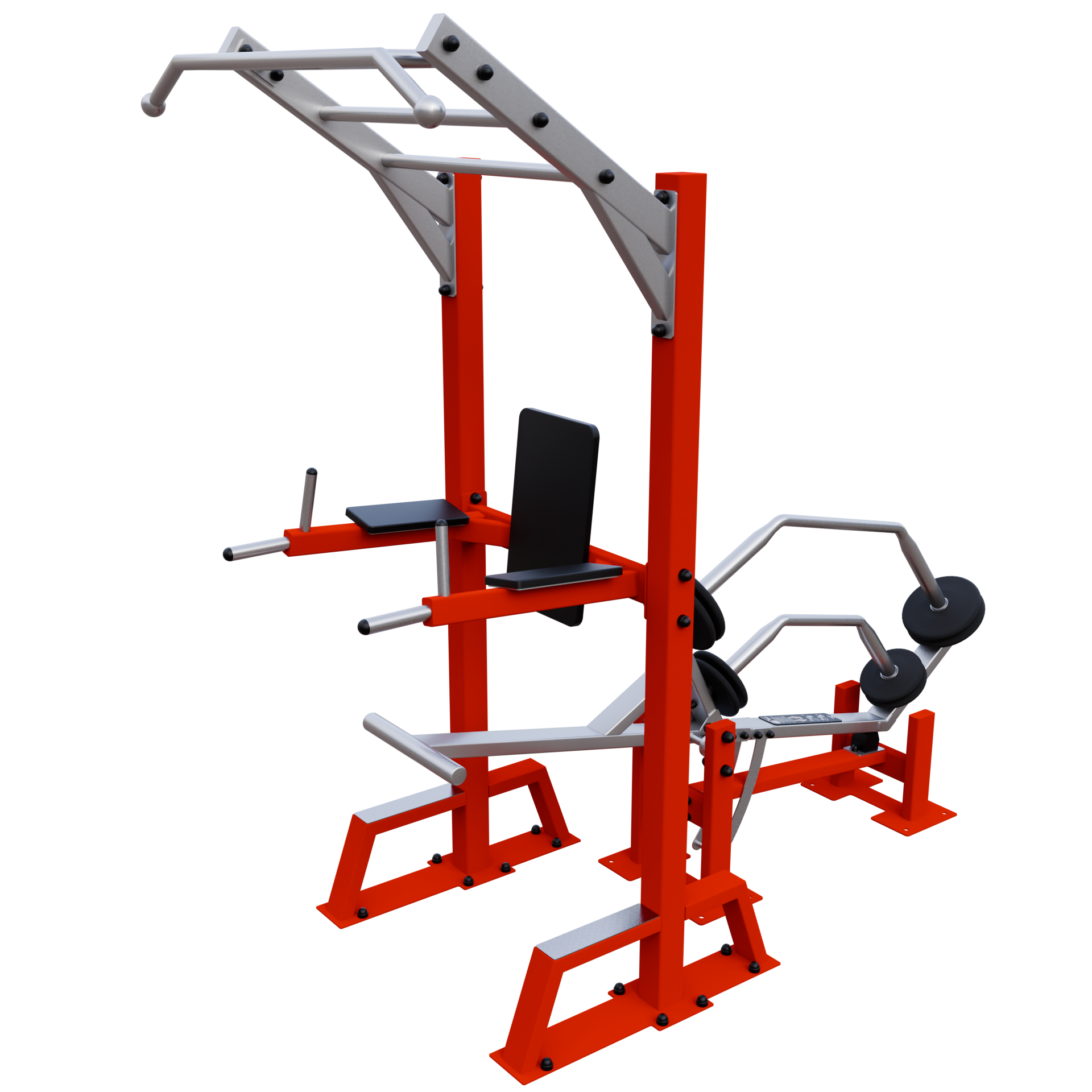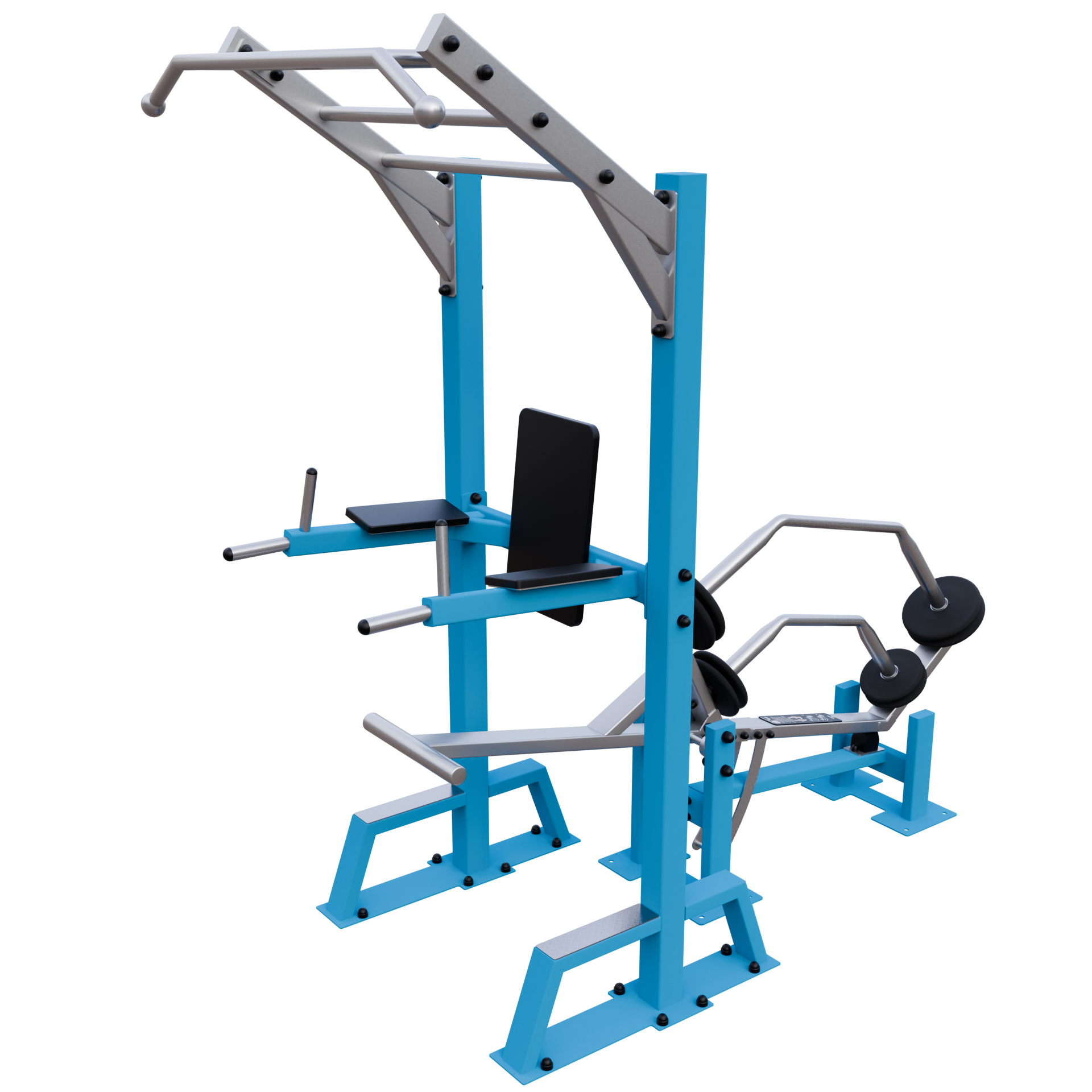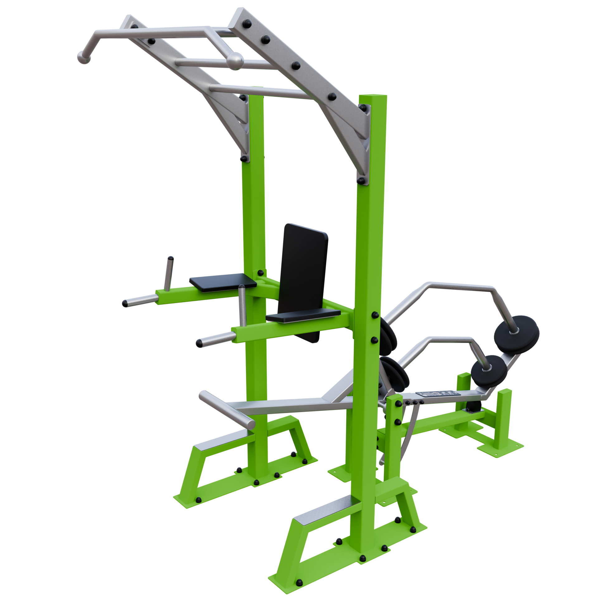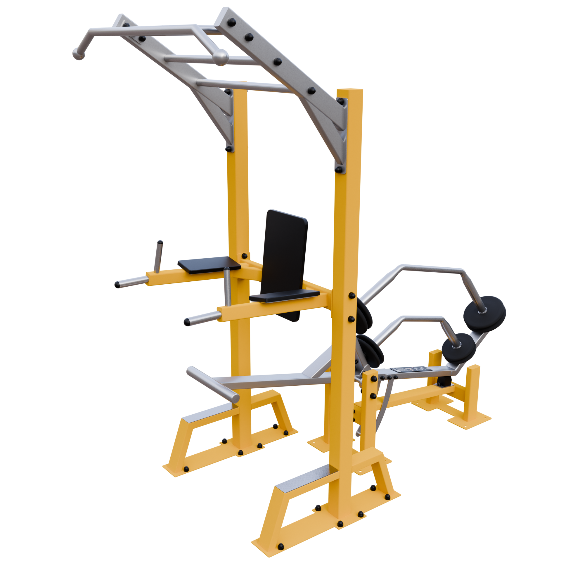 A IVE Assisted Pull Up & Dip device develops chest, back, shoulders, biceps, triceps, and forearms muscles.
