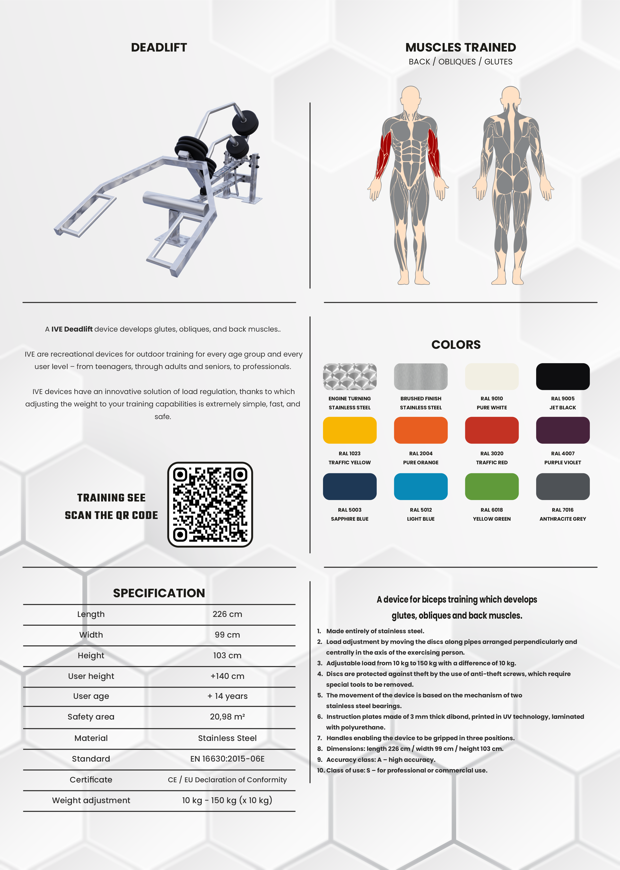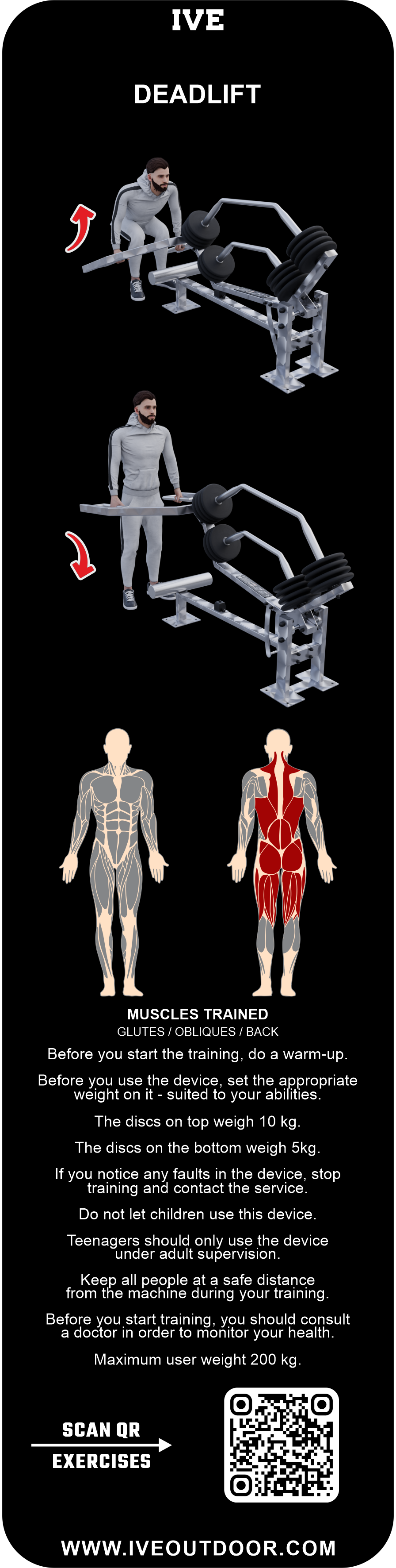 A IVE Deadlift device develops glutes, obliques, and back muscles.