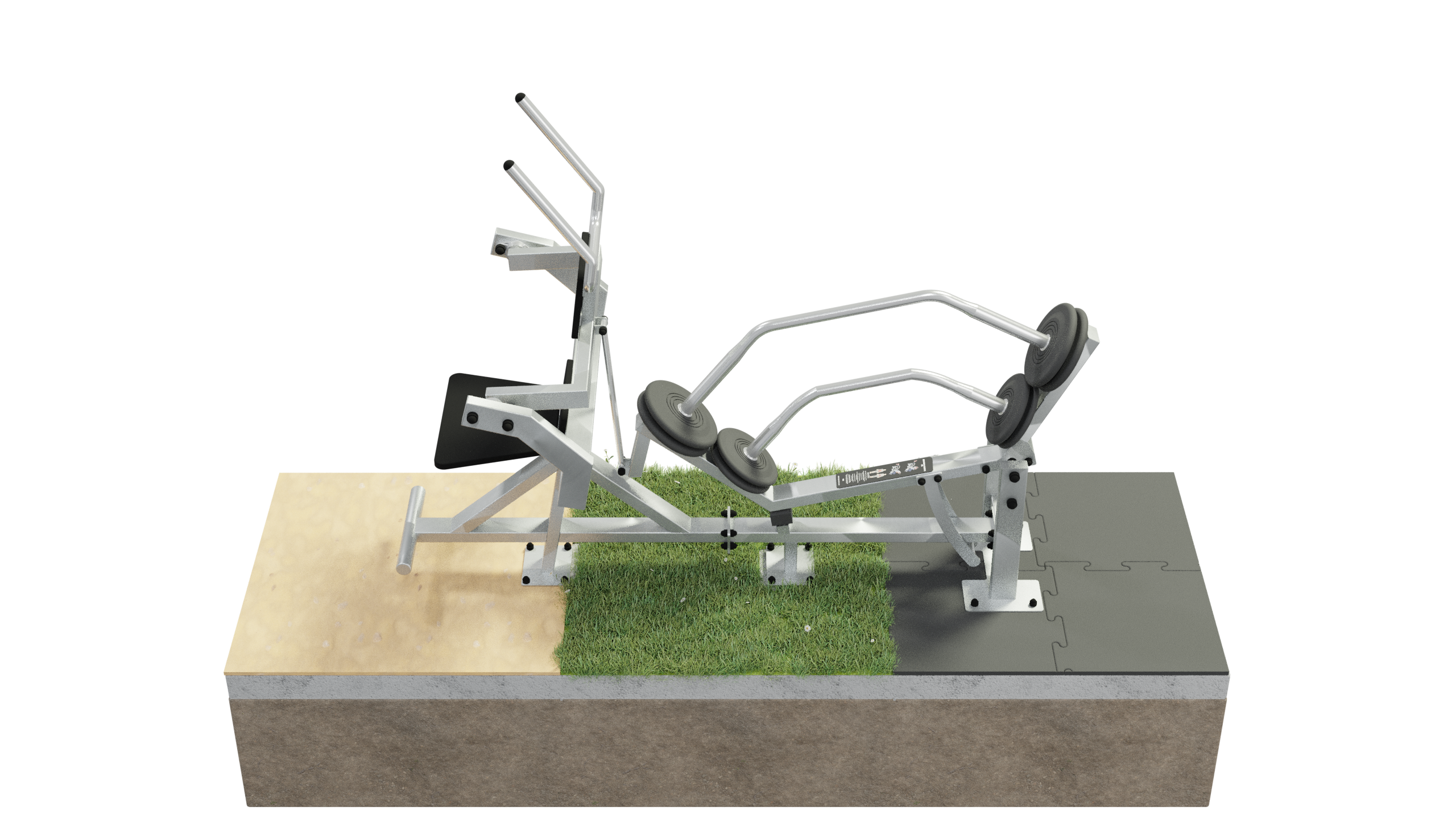 - Regulacja obciążenia poprzez przesuwanie dysków po nierdzewnych rurach ułożonych prostopadle i centralnie w osi osoby ćwiczącej.