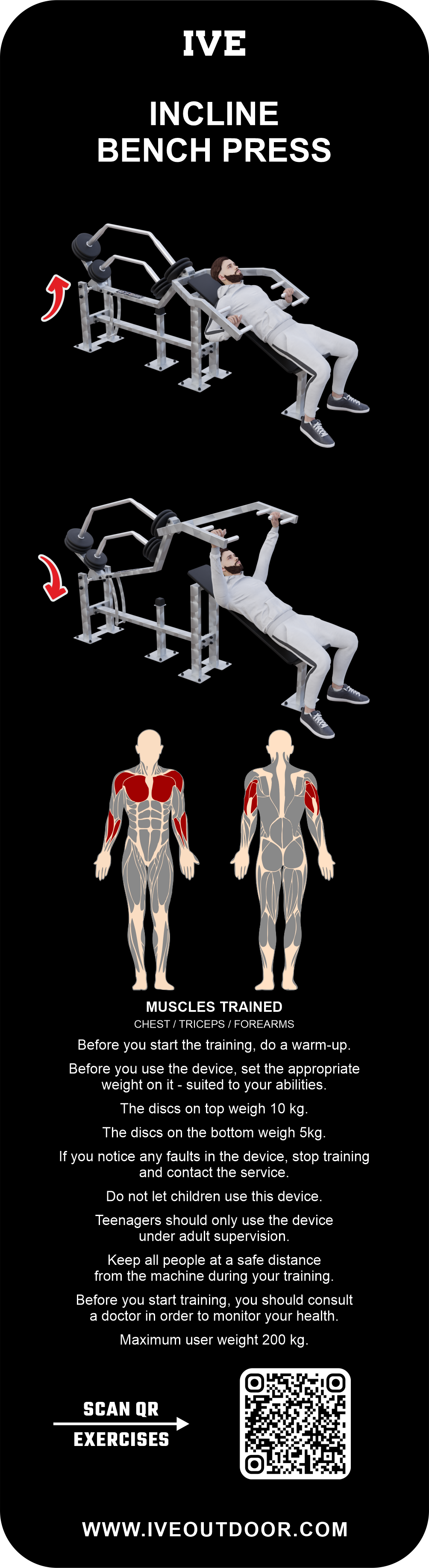IVE Incline Bench Press Device for developing upper chest, triceps, and shoulders muscles