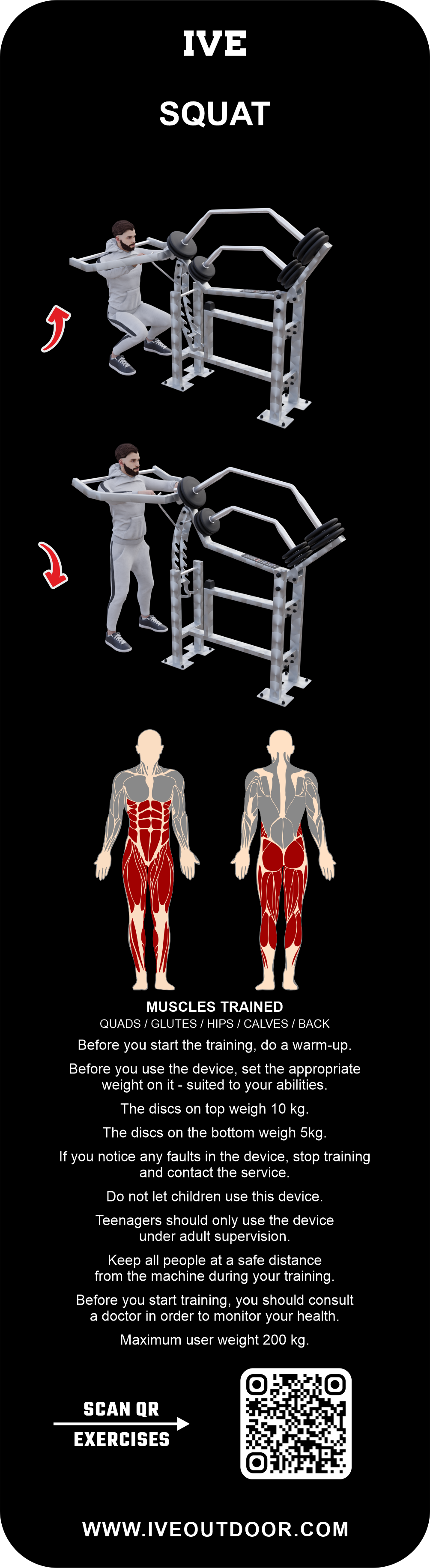 Urządzenie IVE Mięśnie Nóg – Przysiady rozwija mięśnie nóg, pośladków, łydek i pleców.